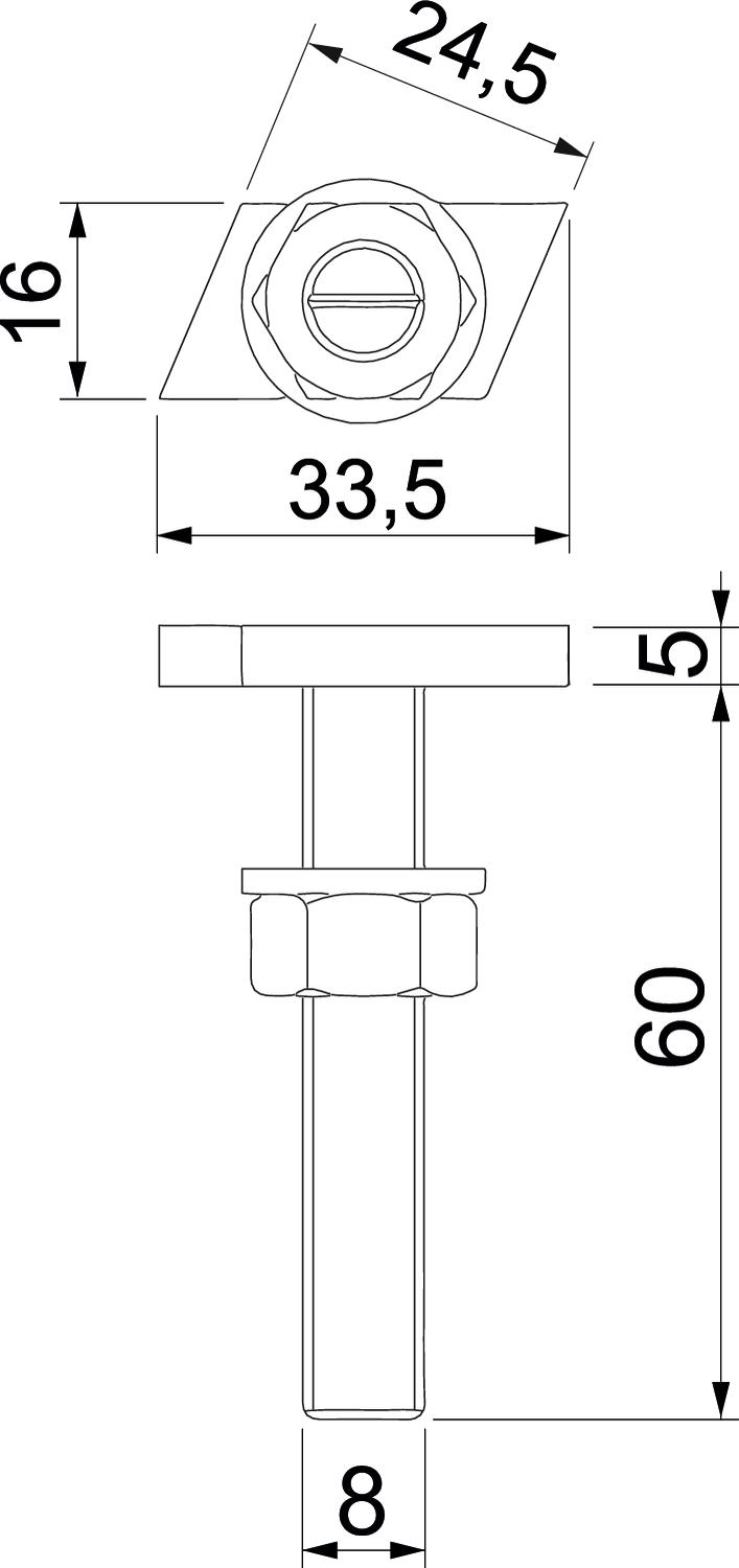 Augstums 5 mm CO2 pēdas nospiedums (GWP) no šūpuļa līdz vārtiem 0,1227 kg CO2e / 1 Gabals Garums 33,5 mm Izmērs M8x60mm Izmērs L 60 mm Materiāls Tērauds Metriskā vītne 8 Piemērots montāžas sliedei jā Platums 16 mm Virsma Cinka lamele Vītne M 8 x 60mm - Visi tipi
