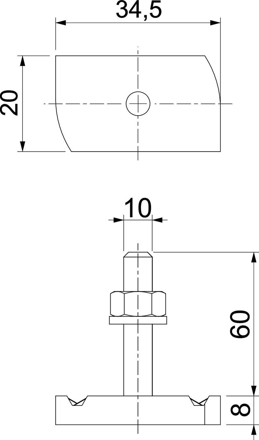 Augstums 8 mm CO2 pēdas nospiedums (GWP) no šūpuļa līdz vārtiem 0,2368 kg CO2e / 1 Gabals Garums 34,5 mm Griezes moments 16 Nm Izmērs M10x60mm Izmērs H 8 mm Izmērs L 60 mm Materiāls Tērauds Paplāksnes Ø 20 mm Piemērots montāžas sliedei jā Platums 20 mm Virsma Cinka lamele Vītne M 10 x 60 - Visi tipi