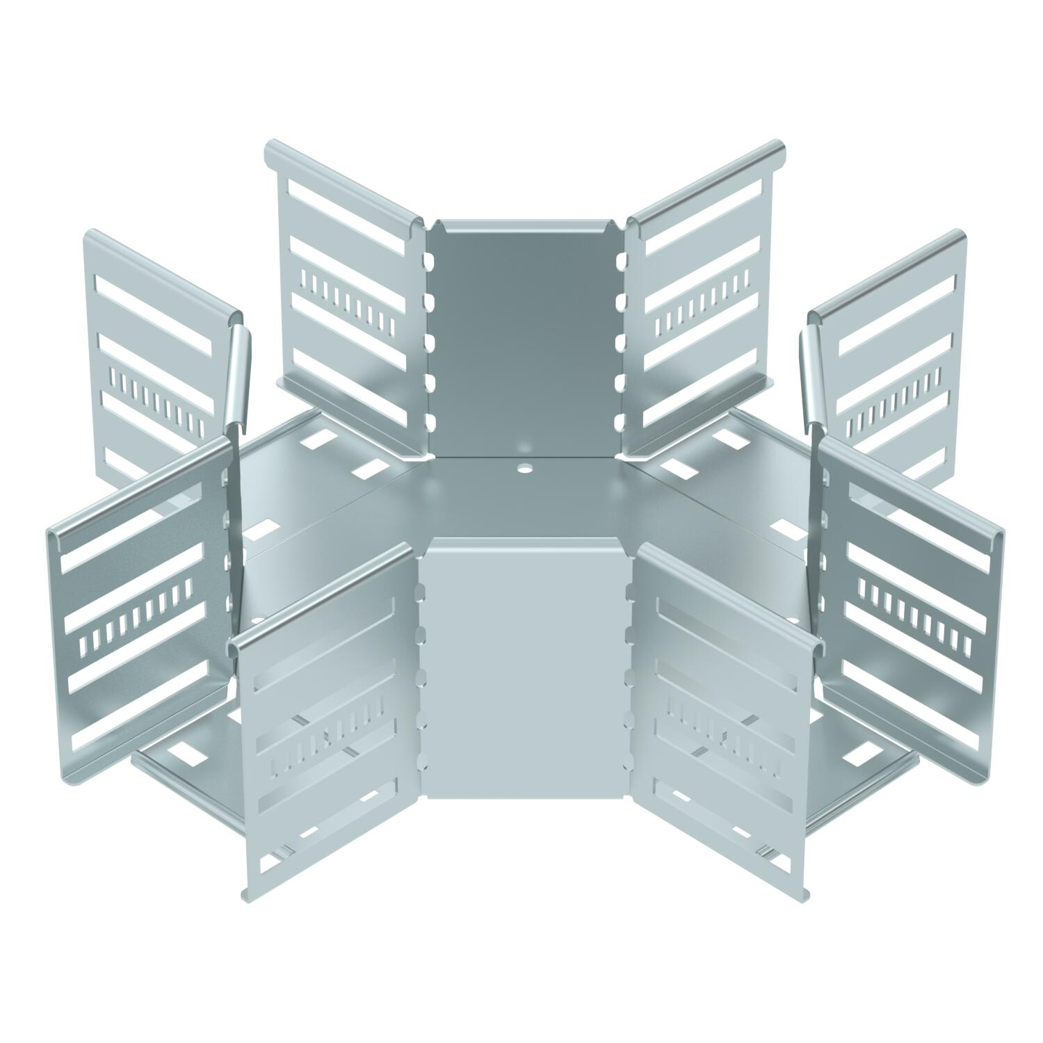 Produkta aprakstsSavienojums horizontāla atzarojuma izveidei, fasondetaļa fiksējamām un skrūvējamām kabeļu renēm ar sānu augstumu 110 mm. Montāža bez skrūvēm ar dubultskavām vai skrūvsavienojumu ar plakangalvas skrūvēm FRS un kombinētajiem uzgriežņiem M6. Iekštelpām. Stiprināšanas aksesuārus jāpasūta atsevišķi.