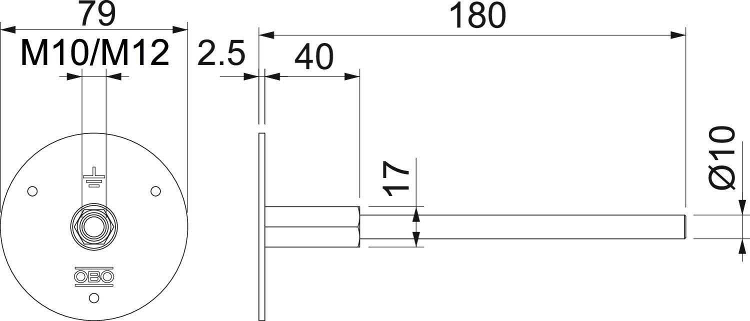 CO2 pēdas nospiedums (GWP) no šūpuļa līdz vārtiem 1,4557 kg CO2e / 1 Gabals Garums 180 mm Īssavienojuma strāva (50HZ) (1s;≤300°C) 3,3 kA Izmērs M10/M12 Materiāls Nerūsējošais tērauds 1.4404 Pieslēguma ass 10 mm Pieslēguma plates diametrs 79 mm Pieslēguma uzgaļa materiāls Nerūsējošais tērauds (V4A) Vītne M10/M12 Zibens impulsa strāvas nestspēja H/100 kA - Visi tipi