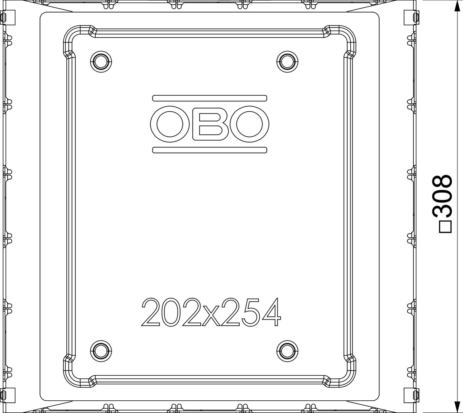 Produkta aprakstsZemgrīdas pieslēguma kārba ar fiksētu un nemainīgu montāžas atveri 202 x 254 mm iebūvējamajai vienībai ar nominālo izmēru 6. Montāžas atvere tiek izveidota, izmantojot piegādes komplektācijā ietverto kausveida elementu. Zemgrīdas kārbā ir montāžas atveres, katra trim 1 sekcijas PVC kanāliem ar nominālo izmēru 60 x 25 un 90 x 35 visās četrās pusēs. Kārba principā ir piemērota izmantošanai grīdas konstrukcijās ar cementa pamatni, ar konstrukcijas augstumu līdz 90 mm.
