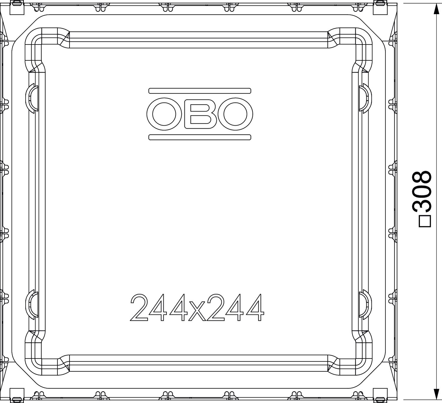 Produkta aprakstsZemgrīdas pieslēguma kārba ar fiksētu un nemainīgu montāžas atveri 244 x 244 mm iebūvējamajai vienībai ar nominālo izmēru 9. Montāžas atvere tiek izveidota, izmantojot piegādes komplektācijā ietverto kausveida elementu. Zemgrīdas kārbā ir montāžas atveres, katra trim 1 sekcijas PVC kanāliem ar nominālo izmēru 60 x 25 un 90 x 35 visās četrās pusēs. Kārba principā ir piemērota izmantošanai grīdas konstrukcijās ar cementa pamatni, ar konstrukcijas augstumu līdz 100 mm.