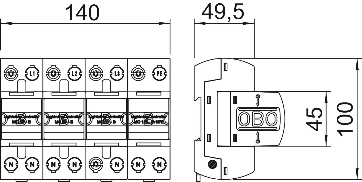 MC 50-B VDE: Zibens novadītājs, tips 1 atb. EN 61643-11 paredzēts pieslēgvietai 0 uz 1 (LPZ) saskaņā ar zibensaizsardzības zonu koncepciju atb. IEC 61312-1 vai DIN VDE 0185-305.