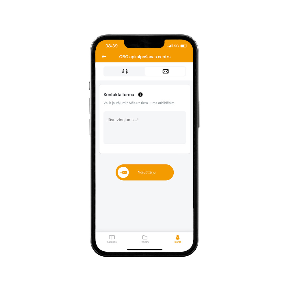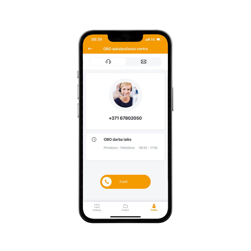 myOBO lietotne nodrošina tiešās saziņas iespējas ar mūsu speciālistiem: jūs varat sazināties ar mums, zvanot pa telefonu vai uzrakstot ziņu, vai vienkārši piesakot atbildes tālruņa zvanu tieši no lietotnes.