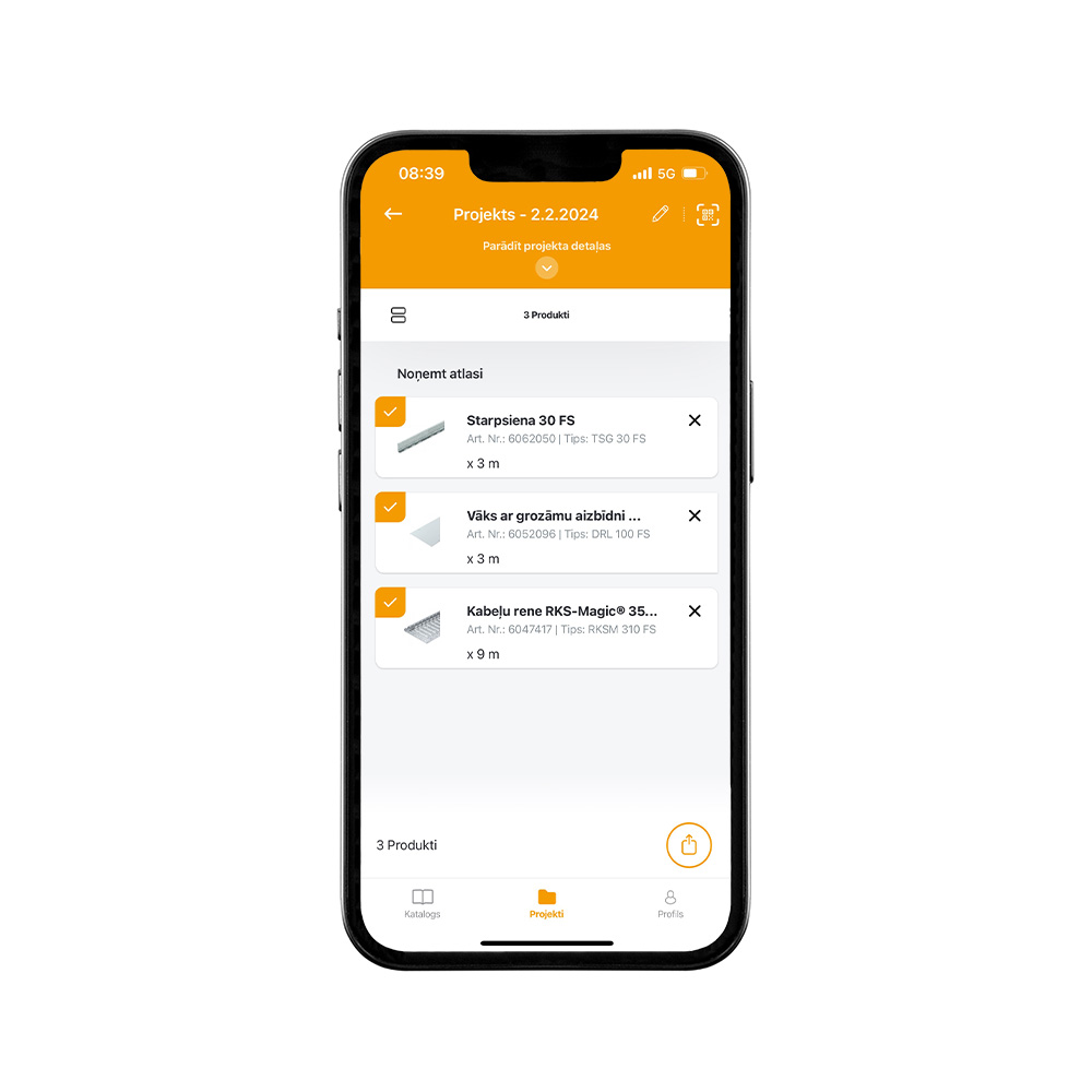 Izveidojiet savu projektu un vienkārši pievienojiet produktus pēc izvēles no OBO kataloga. Jūs varat eksportēt projektus CSV formātā tikai ar vienu klikšķi. Katram projektam automātiski tiek izveidots detaļu saraksts.