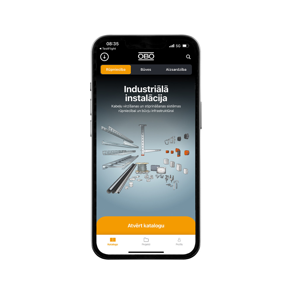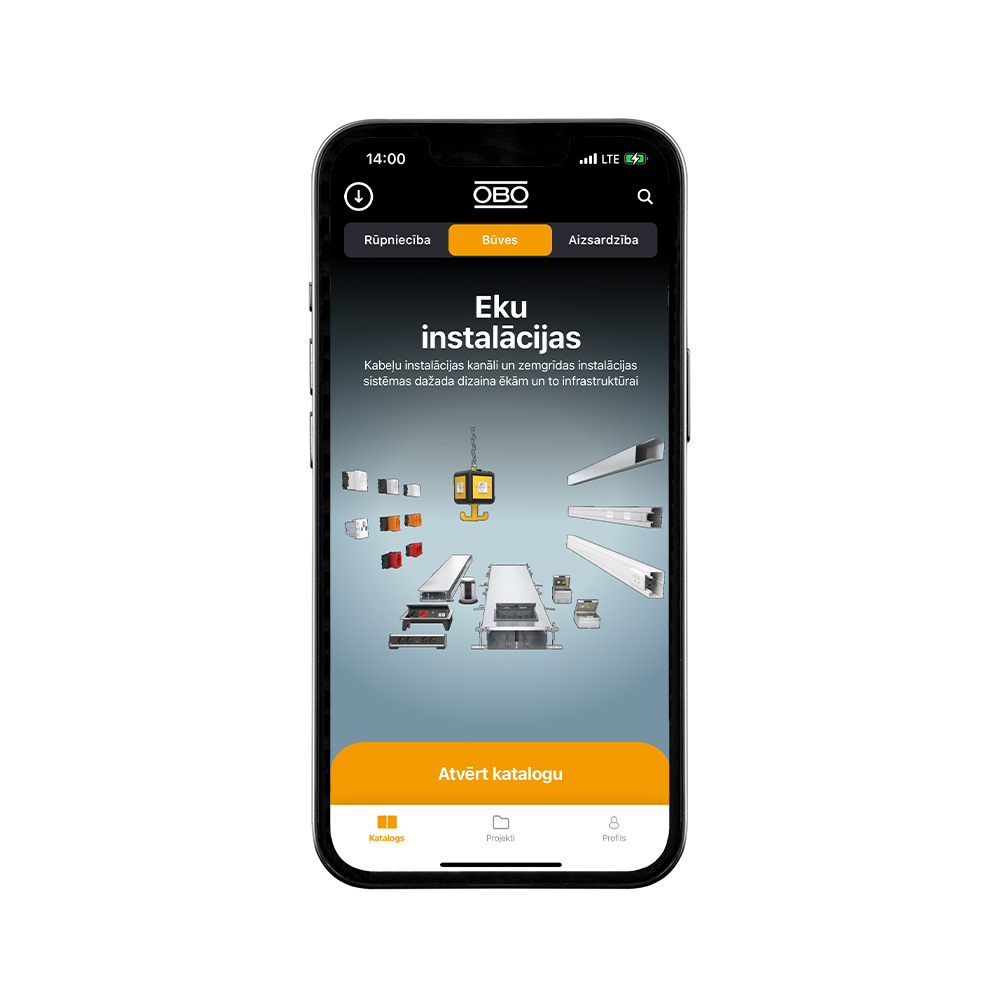 Ērta piekļuve visiem nepieciešamiem resursiem, lai veiktu elektroinstalācijuAr myOBO lietotni jums vienmēr un visur būs nodrošināta piekļuve OBO produktu katalogiem — turklāt bezsaistē, bez interneta pieslēguma. Jums ir iespēja izveidot un pārvaldīt projektus, eksportēt tos un pārnest vēlamos produktus tieši uz grozu pie vairumtirgotāja pēc jūsu izvēles. Turklāt myOBO lietotne nodrošina tiešu kanālu saziņai ar OBO klientu servisu: palīdzības nepieciešamības vai jautājumu gadījumā jūs varat sazināties ar mums, uzrakstot ziņu vai zvanot pa tālruni. Lūk, kā darbojas pārdomāta plānošana un darbs!