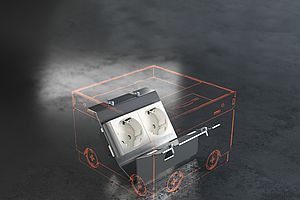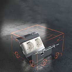 With the UDHOME, the cables are run out via a cord outlet. This is available in two variants: With handle clamp and with an opening contour. The cord outlet with handle clamp is particularly easy to open. The cord outlet with opening contour can only be opened with an additional tool (e.g. screwdriver). This means that the electrical installations are protected against improper access in the floor socket. The floor socket is equipped with a double socket, which is pre-mounted in an angled mounting support.