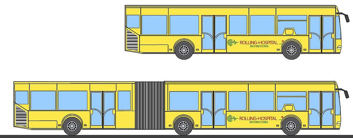 Pavisam kā atbalsta autobusi ir sagatavoti 6 posmainie autobusi, kas ir 18 metrus gari, un 6 autobusi, kas ir 12 metrus gari. Ukrainas pilsoņi var tajos sasildīties, kā arī baudīt siltu zupu vai siltu dzērienu. Pa televizoru ar satelīta antenu var skatīt jaunāko informāciju un ziņas. Viedtālruņu un citu mobilo ierīču uzlādēšanai var izmantot vairākas USB kontaktligzdas. Aprīkojumā ir iekļauta divu degļu gāzes plīts ar piepildītu gāzes balonu, kā arī nojume. Tādējādi var gatavot ārā un aiz nojumes patverties no vēja. Autobusos ir saglabātas esošās sēdvietas. Tāpēc katrā atbalsta autobusā ir 37–52 sēdvietas. Šādam lēmumam ir vēl viena priekšrocība: tiklīdz stāvoklis Ukrainā būs uzlabojies, autobusi būs tikai minimāli jāpārveido, pirms tos varēs atkal izmantot kā sabiedriskos pasažieru transportlīdzekļus.