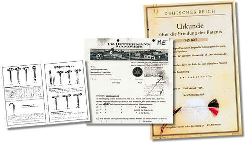 1936. gada sākumā Francs Betermans no Vācijas impērijas Patentu biroja saņēma patentu un dokumentu par izgudroto virknē savienojamo apskavu. Jau kā dibinātājs viņš atbalstīja un veicināja inovācijas.